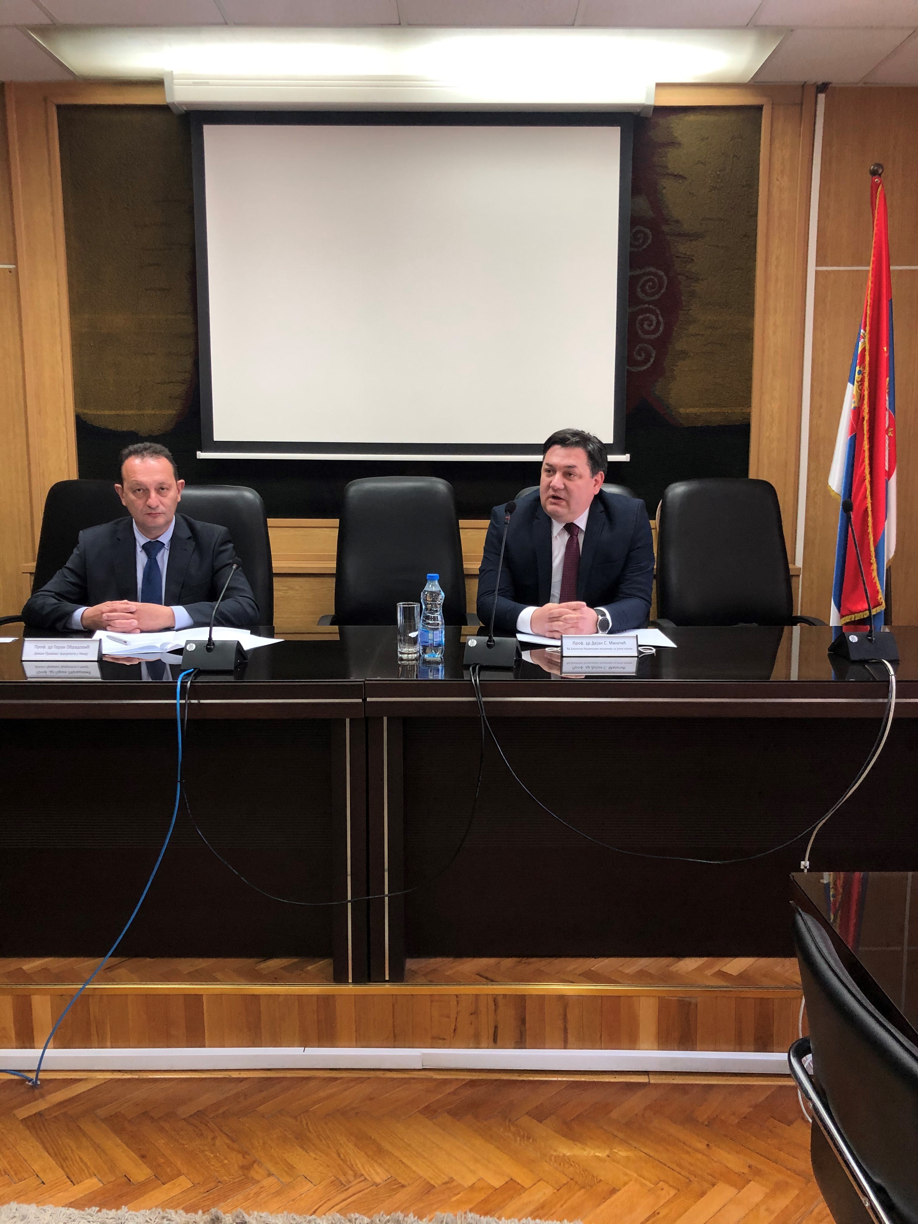 Данас је у Нишу потписан Споразум о сарадњи између Националне академије за јавну управу и Правног факултета Универзитета у Нишу. Потписивањем овог Споразума, још једна кредибилна високошколска институција уписала се на листу партнера НАЈУ. Споразум су потписали в.д. директора НАЈУ, Дејан Милетић и декан Правног факултета Универзитета у Нишу, Проф. Др. Горан Обрадовић.