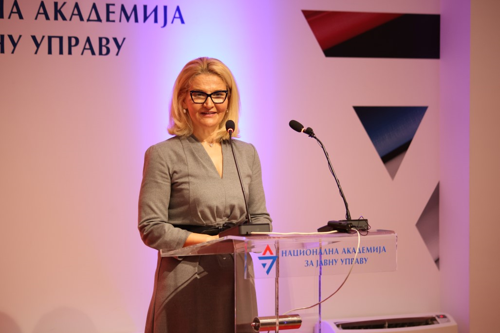 Министарка за европске интеграције Тања Мишчевић нагласила је да се Академија у ових пет година показала као центар изврсности и да, осим јачања капацитета и знања запослених у јавној управи, активно ради на умрежавању и сарадњи, што је од немерљиве важности за рад јавне управе. Министарка је истакла и блиску и конкретну сарадњу Министарства за европске интеграције и Академије која се огледа у размени експертских знања потребних обема институцијама.