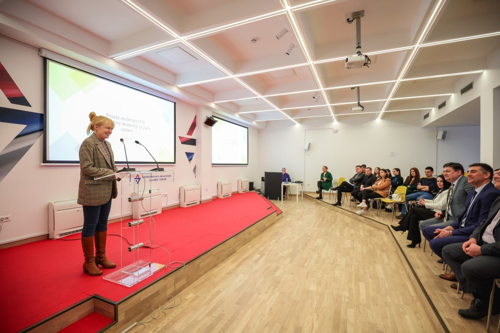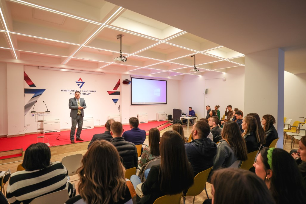 Учесницима студијске посете, којима су се придружили и студенти Универзитета у Београду који су на студентској стручној пракси у Служби за управљање кадровима РС, представљен је начин рада и функционисање НАЈУ, као и место Академије у систему јавне управе Републике Србије, а након тога су обишли тренинг центар и стекли увид у организацију и спровођење тренинга.