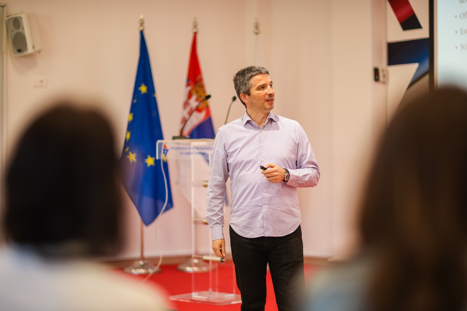 Предвођени менторком Јасном Ристић из Канцеларије за ИТЕ, студенти су имали прилике да се упознају са процесом планирања спровођења програма обука, а као и са дигиталним алатом за реализацију тог процеса – LMS платформом НАЈУ. Рад Академије су представили начелница Одељења за спровођење и евалуацију програма обуке Александра Мајкић и руководилац Групе за вођење евиденција и ИТ подршку Синиша Барјактаревић, а судентима је претходно омогућено похађање обука Националне академије на LMS платформи.