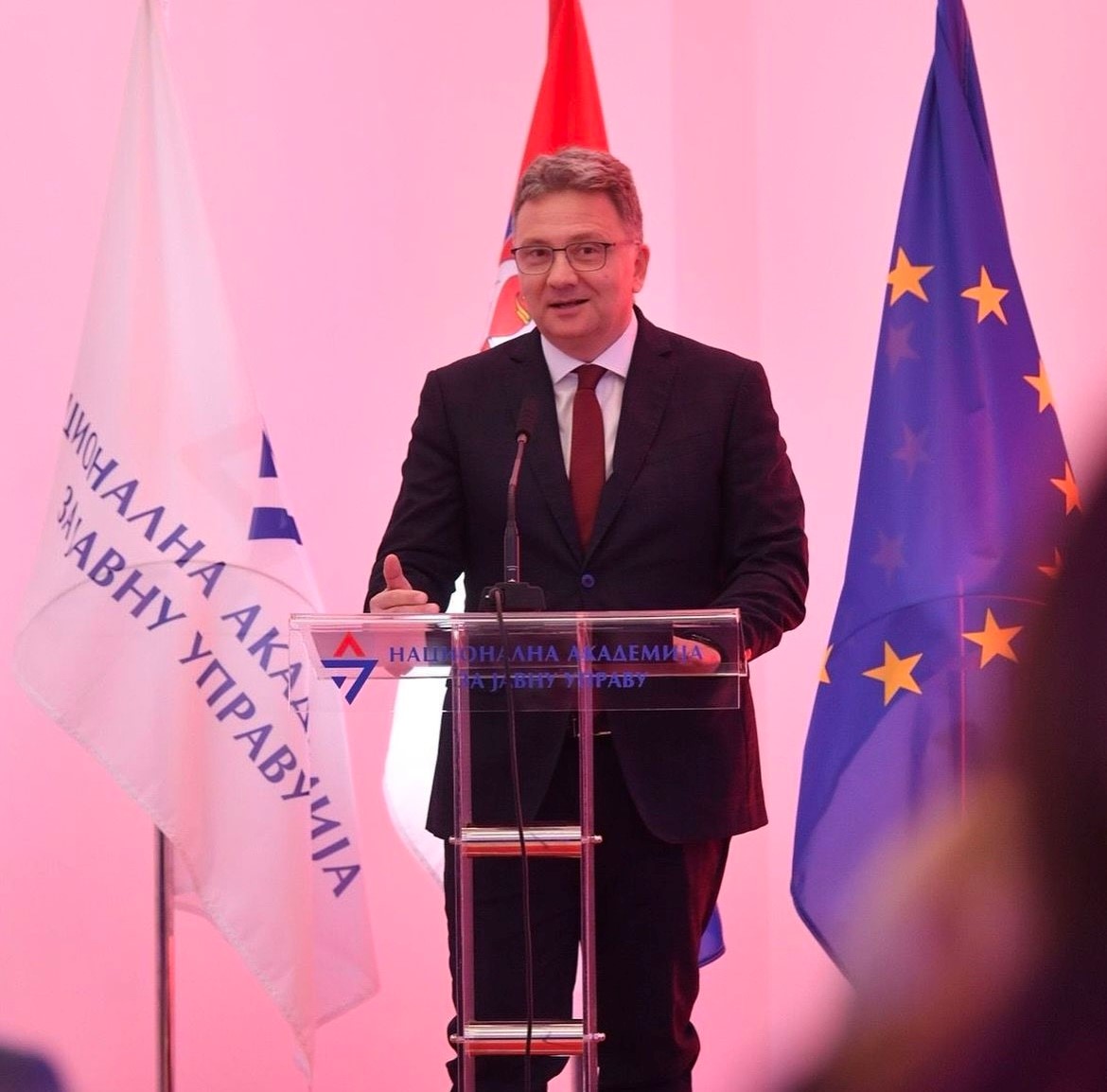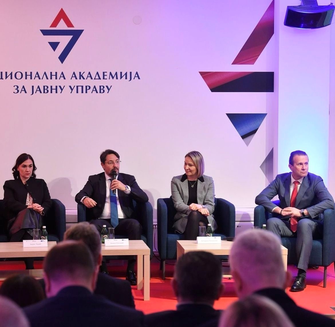 Никола Бертолини, шеф одељења за сарадњу Делегације ЕУ рекао је да процес приступања који Србија спроводи уз значајну помоћ Европске уније, у великој мери зависи од ефикасности високих државних службеника. „Управо они су креатори иновација у начину рада јавне управе која је у служби грађана. План раста и убрзање приступања ЕУ су прилике за њих да буду транспарентнији и одговорнији према грађанима Србије. Значајна улога поверена је Националној академији за јавну управу, која помаже приступање земље Европској унији“, рекао је Бертолини.